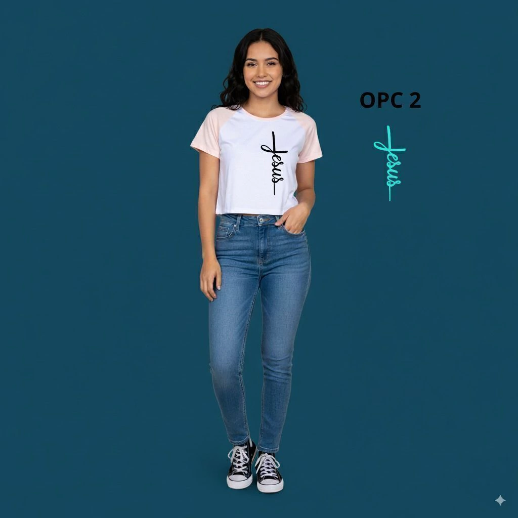 Estilo Deportivo y Fe Profunda: Camiseta Croptop Raglan Bicolor.