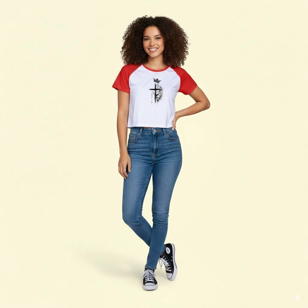Presentamos la Camiseta Raglan (estilo Béisbol) CropTop de Generación de Cristo, la prenda perfecta para la Mujer que busca comodidad, un diseño moderno y expresar su fe. Su diseño bicolor es un clásico urbano que combina lo mejor de ambos mundos: estilo y confort.
